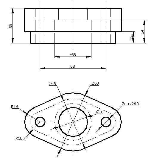 Вариант 12. Выполнить три вида детали, сделать полезные разрезы, проставить размеры и построить прямоугольную изометрию с вырезом ¼