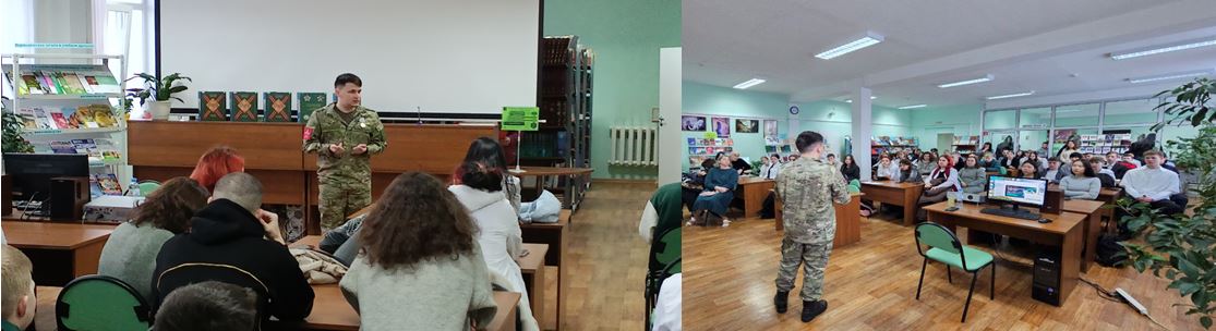 8 декабря в рамках цикла мероприятий, посвященных Году Защитников Отечества, в Научной библиотеке Красноярского ГАУ прошла встреча студентов СПО с заместителем руководителя Союза ветеранов и участником специальной военной операции, руководителем регионального отделения Всероссийской Общественной Организации «Молодая Гвардия» Ильясом Камильевичем Валеевым.
