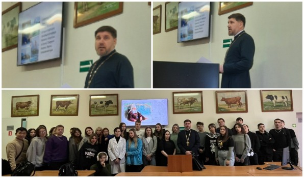 В целях духовно-нравственного воспитания обучающихся 17 декабря в нашем институте прошла лекция в рамках миссионерской акции «Второе миссионерское путешествие святителя Иннокентия Московского». Перед студентами 1 курса выступил настоятель храма святой мученицы Татианы иерей Антоний. Священник рассказал о жизни святителя Иннокентия Московского, о его трудах и подвиге в миссионерской деятельности по просвещению народов Сибири и Америки.
