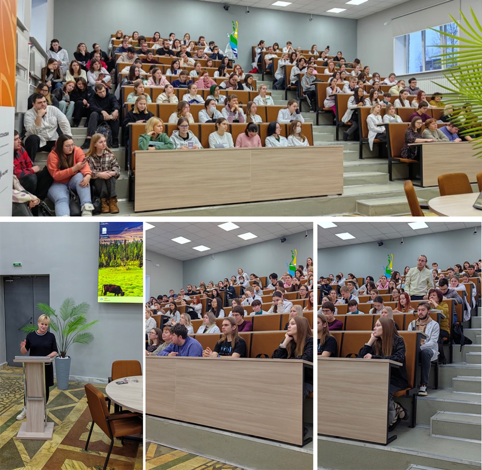 Студентам рассказали об истории компании, основном виде деятельности, перспективах развития агрохолдинга, познакомили ребят по видео со структурой агрохолдинга, рассказами специалистов о условиях работы, сообщили о вакансиях для выпускников, социальных гарантиях и преимуществах работы на крупном предприятии, что вызвало интерес у студентов и преподавателей института. Для ребят специальности «Ветеринария», направлениям подготовки «Зоотехния» и «Технология производства и переработки сельскохозяйственной продукции» от компании поступило приглашение не только о трудоустройстве, но и прохождение производственной практики на предприятии.