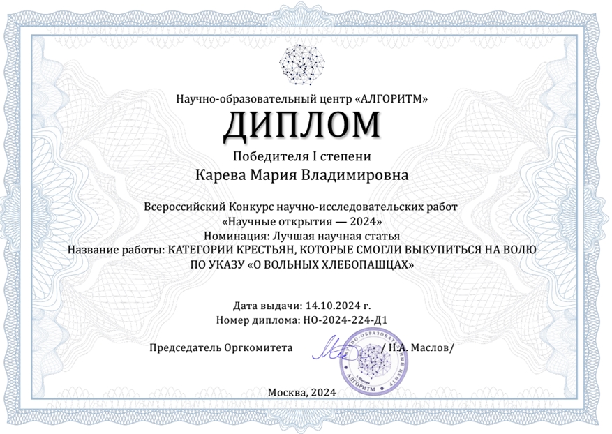 Дипломом за 3