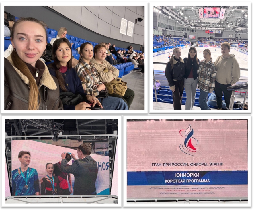 Студенты юридического института, группы Ю5.2-22о «Судебная экспертиза» посетили мероприятие посвященное Гран-при России среди юниоров, проходящее в Ледовом дворце « Кристалл арена».