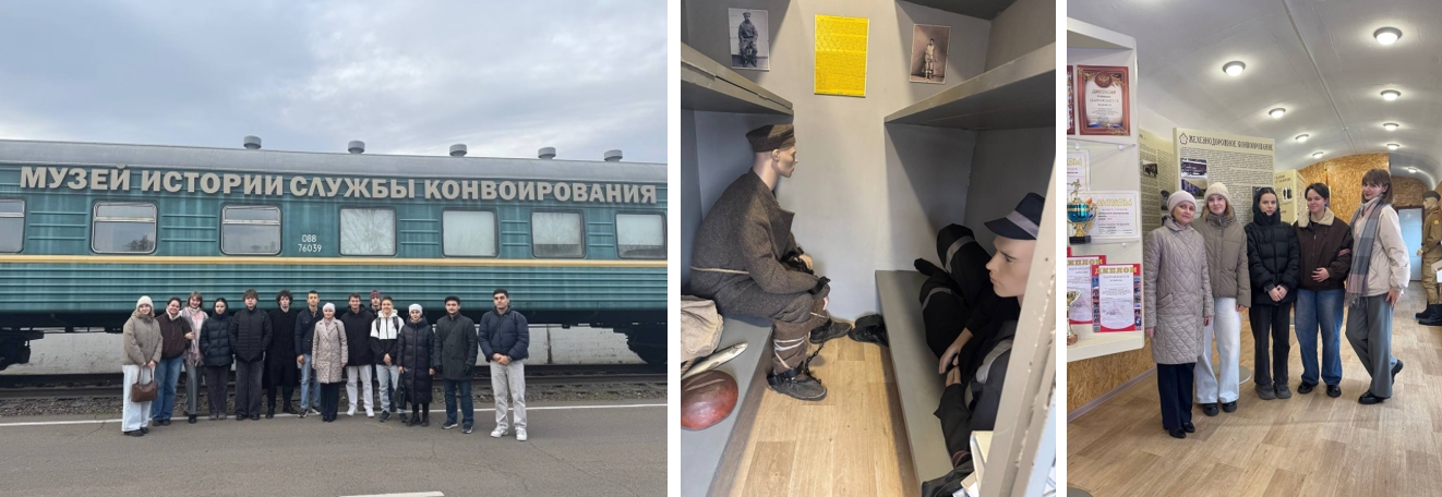 Студенты и преподаватель осмотрели камеры для перевозки конвоируемых, купе начальника и состава караула, помещение для приема пищи, манекены конвоиров и конвоируемых лиц в полный рост в одежде разных эпох.
