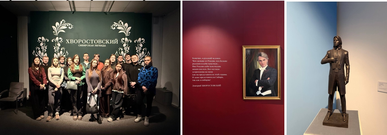 Через экспозицию был показан жизненный путь Дмитрия Александровича Хворостовского. Картины ярко и живо отразили стойкий сибирский характер нашего знаменитого земляка. Кроме того, благодаря профессионализму и знаниям экскурсовода, студенты познакомились с новой для себя, эффектной техникой живописи - пастозной, которая произвела на них сильное впечатление.
