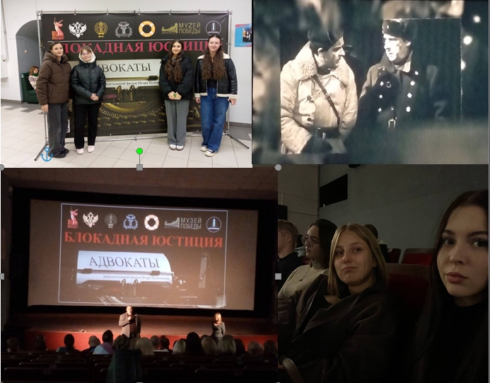 4 октября студенты групп Ю33.2-25о и Ю-33.3-25о посетили «Дом кино» для просмотра документально - исторического фильма «Блокадная Юстиция. Адвокаты». Данный фильм рассказывал о подвигах адвокатов в один из самых сложный периодов нашей истории - Блокада Ленинграда. Фильм оказался действительно интересным и познавательным, в нём показали не только трудности того времени, но и силу духа, профессионализм и человечность людей, которые несмотря на тяжелейшие условия продолжали выполнять свой долг. Было приятно увидеть, с каким уважением и вниманием рассказана эта тема. В целом впечатление очень положительное. Фильм оставил после себя чувство гордости и уважения к тем, кто тогда жил и работал.