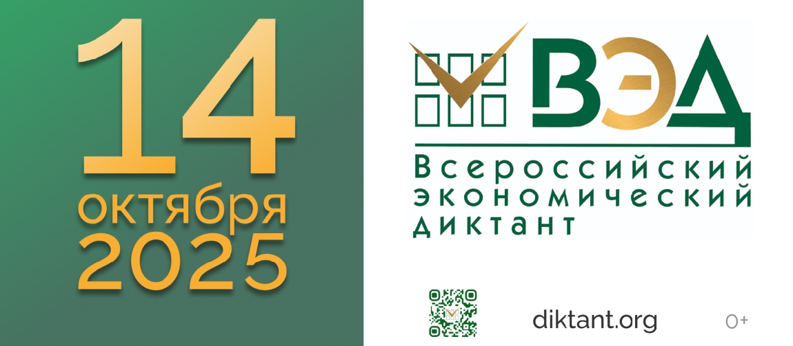 Общероссийская образовательная акция «Всероссийский экономический диктант» состоится 14 октября 2025 г. во всех регионах России, а также в зарубежных странах.