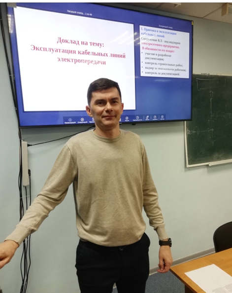 Один из докладов – начальник Красноярского РЭС филиала АО «Красноярская региональная энергетическая компания» (КрасЭКо), Александр Александрович Марьясов, выпускник ИИСиЭ Красноярского ГАУ 2003 г., осветил тему «Современные методы и оборудование для поиска повреждений на силовых кабельных линиях в распределительных сетях 6-10 кВ». На конкретных примерах Александр Александрович показал современные приборы для поиска неисправностей в кабельных линиях разных видов, описал технологический регламент ремонта кабелей с изоляцией из сшитого полиэтилена и других современных электроизоляционных материалов, а также привел примеры использования современного оборудования для прокола поврежденных кабелей. В связи с тем, что время на проведение ремонта кабелей ограничено (что бывает при перебоях в электроснабжении рассказал уже Тимофеев Г.С.), важно при формировании содержания магистерских диссертаций по повышению энергоэффективности систем электроснабжения предприятий АПК не забывать вопросы проведения качественного и ускоренного ремонта кабельных линий и их правильной эксплуатации, в соответствии с современными требованиями.