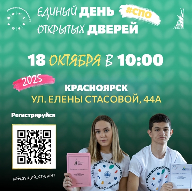 - для учащихся среднего профессионального образования 14.10.2025 г. в 14:00 по адресу: г. Красноярск, ул. Елены Стасовой, 44г (библиотека, читальный зал).