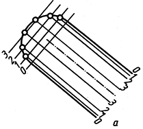 Цилиндрическая поверхность с горизонтальными прямолинейными образующими изображается серией параллельных прямых с неровными интервалами. На рис. 188, а вычерчен горизонтально расположенный прямой круговой полуцилиндр, а на
