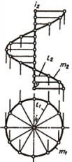 Прямой геликоид образуется движением прямолинейной образующей l по двум направляющим: винтовой линии m и ее оси i; при этом образующая l пересекает винтовую ось под прямым углом (рисунок 11, а). Прямой геликоид используется при создании винтовых лестниц, шнеков, а также в силовых резьбах, в станках.