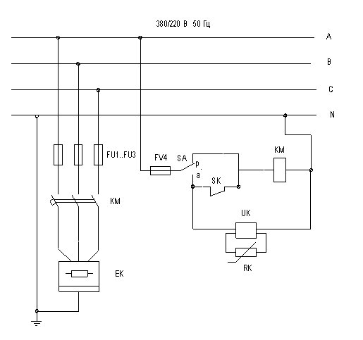 Ознакомиться с электрической схемой подключения к сети электрообогреваемой панели (рис. 6.3).