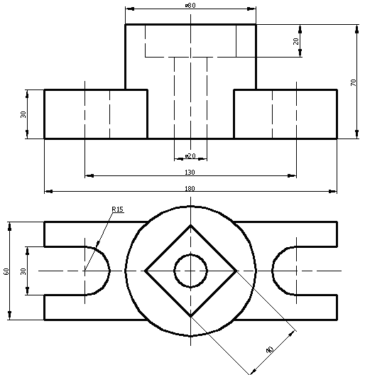 Вариант 13. Выполнить три вида детали, сделать полезные разрезы, проставить размеры и построить прямоугольную изометрию с вырезом ¼