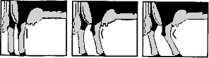 У мясного скота смена зубов происходит на год-полтора раньше. В 21-й день прорезаются все молочные, коренные зубы, в пять-шесть месяцев появляется одна пара моляров, в 18 месяцев - две, в 2 года - три. В 18 месяцев выпадают молочные зацепы, в два с половиной года - внутренние средние резцы, в три с половиной - четыре года - молочные зубы полностью заменяются на постоянные.