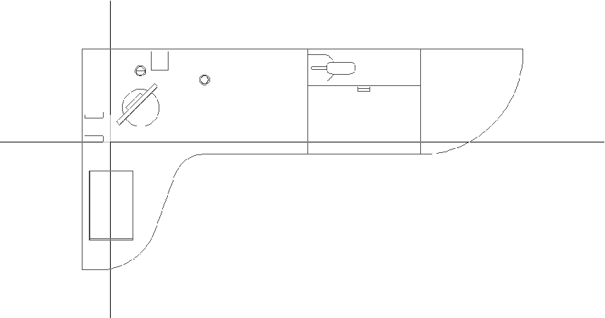 147. Создайте линию контура полки под принтер, используя привязку к оконечным точкам боковой стенки рабочего места старшеклассника и боковых стенок стоек для компакт-дисков, а также к точке падения перпендикуляра (рис. 6.50), после чего удалите контуры боковых стенок стоек для компакт-дисков.