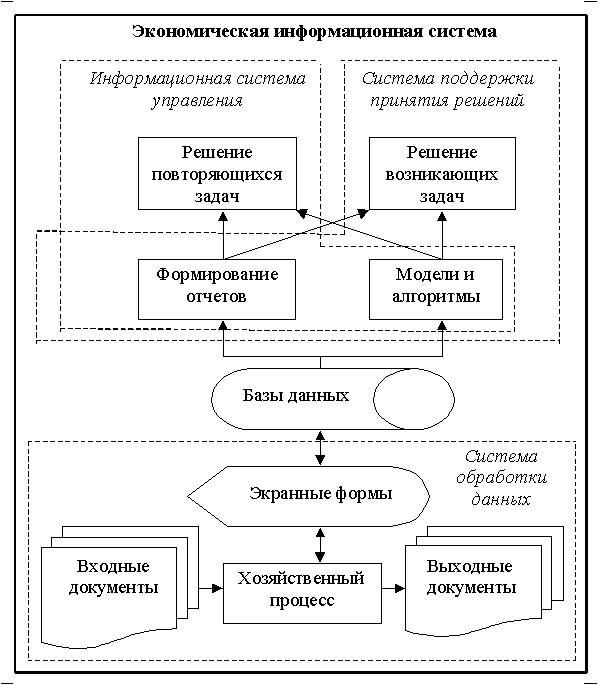 Экономическая информационная система (ЭИС) представляет собой совокупность организационных, технических, программных и информационных средств, объединенных в единую систему с целью сбора, хранения, обработки и выдачи необходимой информации, предназначенной для выполнения функций управления. ЭИС связывает объект и систему управления между собой и с внешней средой через информационные потоки: