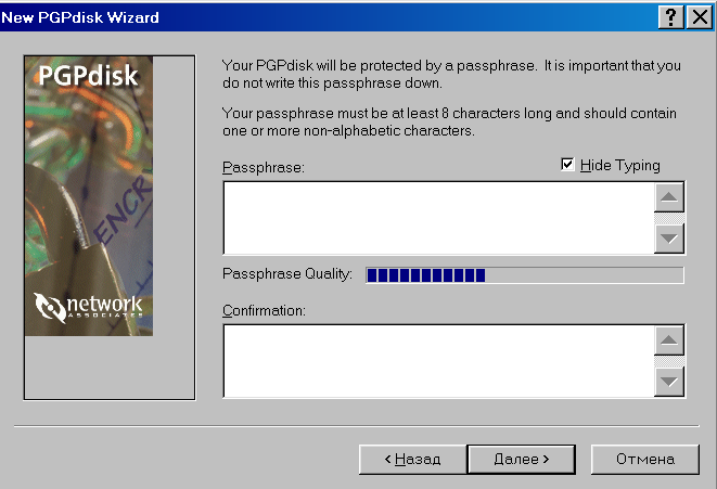 Рис. 52. Окно PGPdisk Passphrase