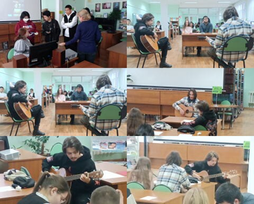 Участники вечера, под руководством Сухих Елены Александровны, познакомились с интересными фактами из биографии поэта, погрузились в мир его лирики, слушая строки о природе, любви, матери и России. Особое внимание было уделено музыкальному воплощению стихов. Прозвучало живое звучание стихов Сергея Есенина и песен под гитару молодежью. Очень проникновенно воспринималось звучание известных романсов и песен в том числе: «Не жалею, не зову, не плачу…» и «Отговорила роща золотая…» в записи.