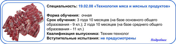 Область профессиональной деятельности выпускников: организация и ведение технологических процессов производства мяса, мясных продуктов и пищевых товаров народного потребления из животного сырья.