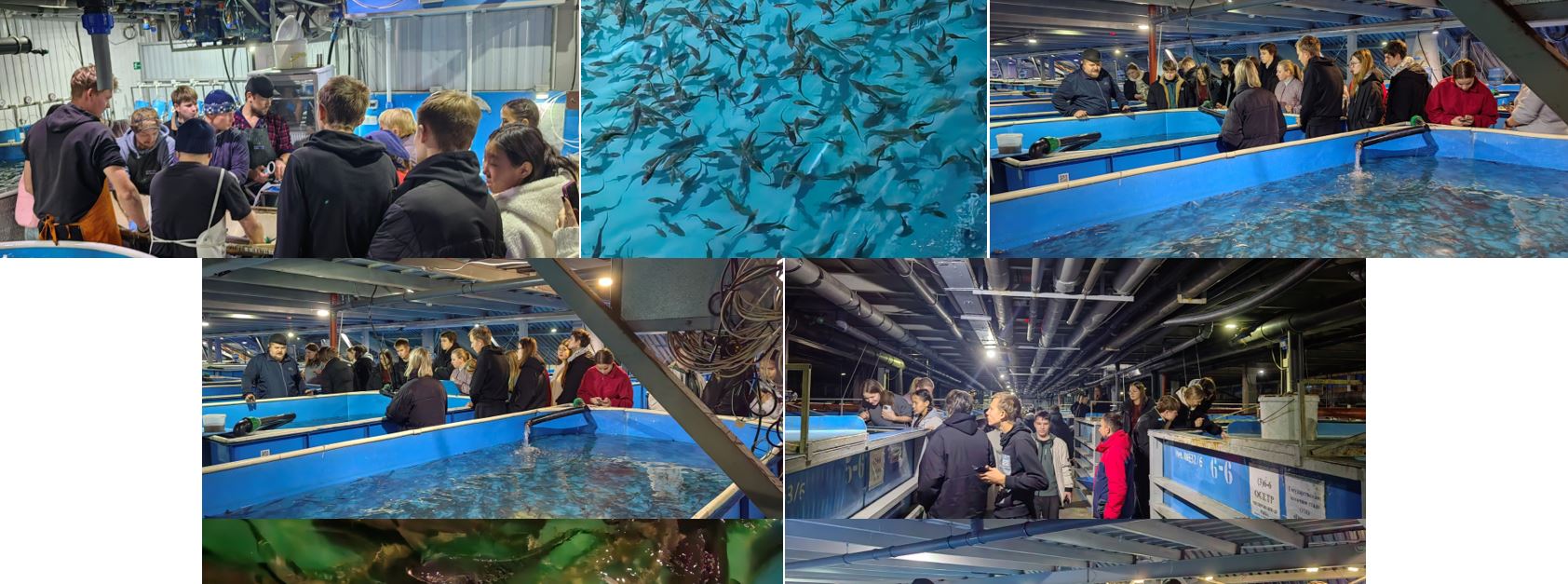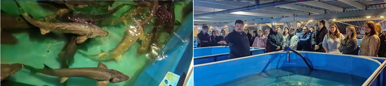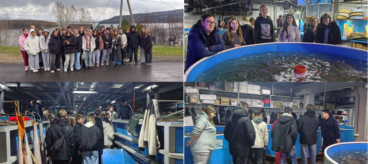 В рамках экскурсии студентам рассказали об истории компании, основной деятельности, показали методы разведения, выращивания и реализацией рыбной продукции.