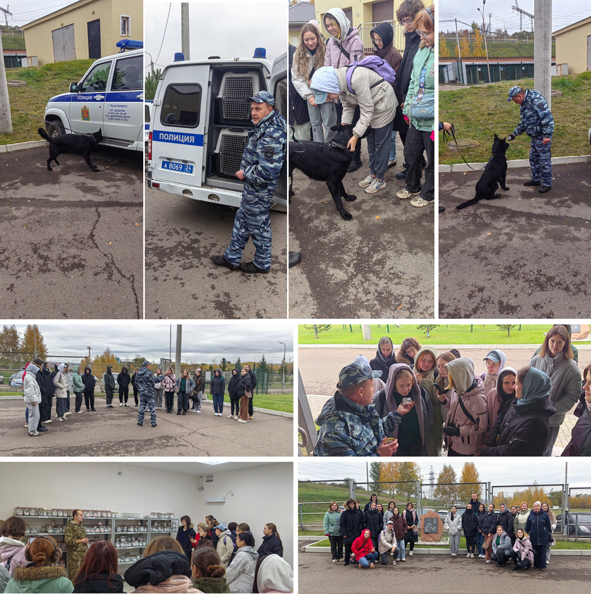 Визит в красноярский центр кинологической службы состоялся в рамках акции «Новые рубежи» национального проекта «Кадры» совместно с Центром занятости населения г. Красноярска. Сотрудники центра провели для студентов института прикладной биотехнологии и ветеринарной медицины экскурсию по отделам. Ребятам рассказали о методах снятия запаха, его особенностях, уникальном способе проверки и хранении. Далее специалисты-кинологи показали на практике эффективность использования служебных собак в самых разных направлениях и провели показательные выступления с поиском условных наркотических и взрывчатых веществ, а также работой по задержанию подозреваемых.