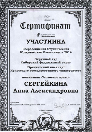 В марте 2015 года Молодежное правительство Красноярского края объявило конкурс - «Лучший выпускник Сибири». Впервые в нем приняли участие наши выпускники - Михаил Смирнов, Ефим Стельмах, Юлия Дружинина и Юлия Рейзнер. Конкурс проходил в несколько этапов. В результате испытаний в финал конкурса вышли Юлия Дружинина и Юлия Рейзнер, им вручены сертификаты участников финала в номинации «Юриспруденция» Поздравляем!!!