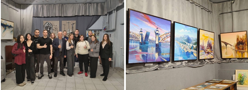 В рамках культурного выхода студенты смогли оценить разнообразие современных художественных направлений. Они познакомились с пронзительными пейзажами Валентины Горошковой, окунулись в сказочный мир графики Светланы Кудимовой и прониклись осенней элегией в работах Марины Тонкаль.