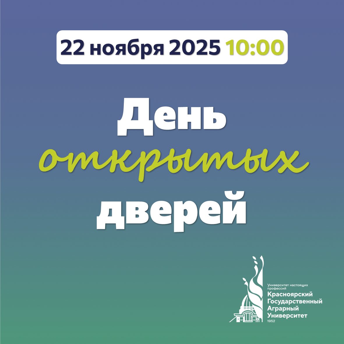 Красноярский государственный аграрный университет приглашает 22 ноябряя 2025 г. в 10:00 ч. на День открытых дверей высшего образования!