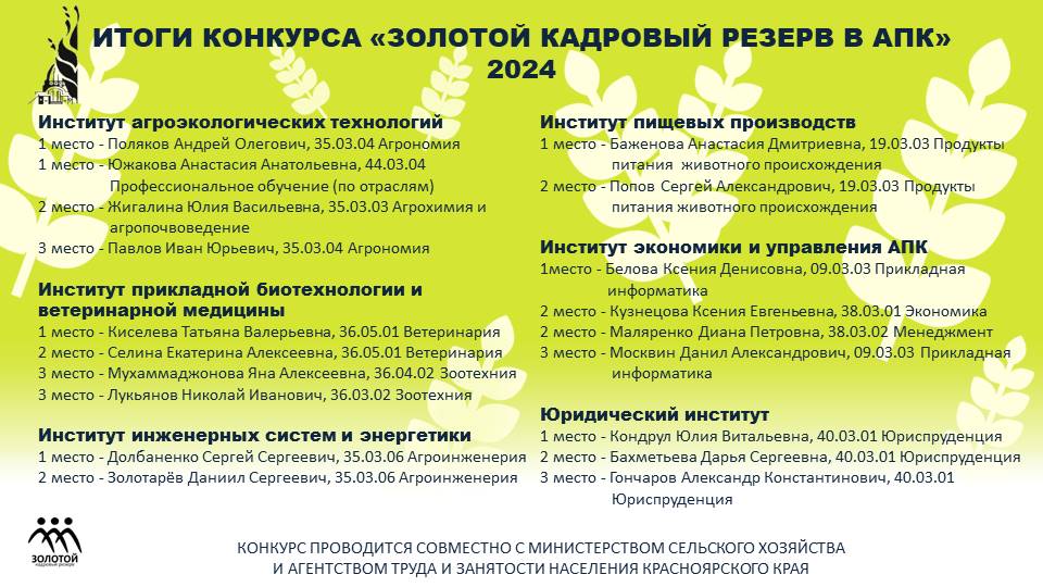 Итоги конкурса "Золотой кадровый резерв АПК"