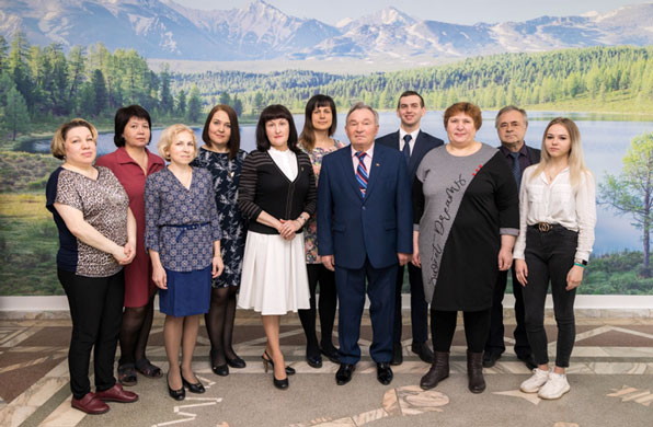 В центре: зав.кафедрой д.б.н., профессор Смолин С.Г., слева направо: к.б.н., доцент Саражакова И.М. д.б.н., профессор Колесников В.А., ст. лаборант Симашкевич А.Р., ст. лаборант Авдеева А.В., к.в.н., доцент Сулайманова Г.В., д.б.н., и.о.профессора Успенская Ю.А., к.б.н., доцент Бойченко Н.Б., д.б.н. и.о. профессор кафедры Федотова А.С., врач-ординатор Минакова В.И., аспирант Жигарев А.А.