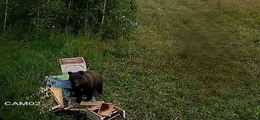 Хозяин тайги хозяйничает на кочевой пасеке