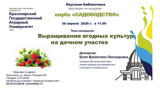 Научная библиотека приглашает на заседание клуба "Садоводство" 30 апреля 2026 г. в 11.00