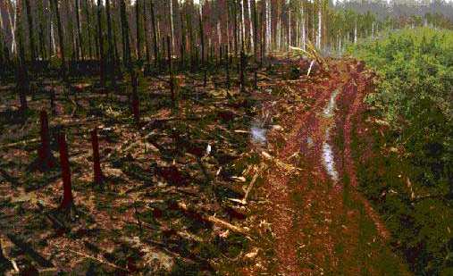 Лесной пожар, остановленный заградительной минерализованной полосой, проложенной агрегатом АЛТ-55