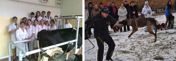 Рисунок 1 – Студенты на практических занятиях по дисциплинам «Разведение животных» и «Служебное собаководство»