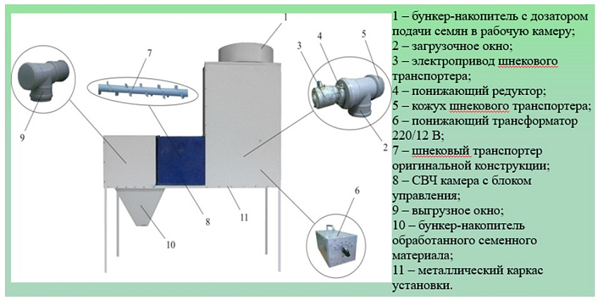 К.т.н. Александром Александровичем Василенко совместными исследованиями с ФИЦ КНЦ СО РАН Красно-ярский НИИСХ установлено, что в настоящее время прямые потери зерна сельскохозяйственных культур от ком-плекса инфекций, в наиболее благоприятные для их развития годы, достигают 50 процентов. Несмотря на то, что ис-следования по обеззараживанию семян от микрофлоры ведутся с давних пор, вопрос этот в последние годы стал бо-лее актуальным. Наиболее эффективным, по данным многих авторов является метод обработки семян электромаг-нитным полем сверхвысокой частоты (ЭМП СВЧ). Данный метод обладает не только обеззараживающим эффектом в отношении фитопатогенных микроорганизмов, но также стимулирует ростовые процессы семян.